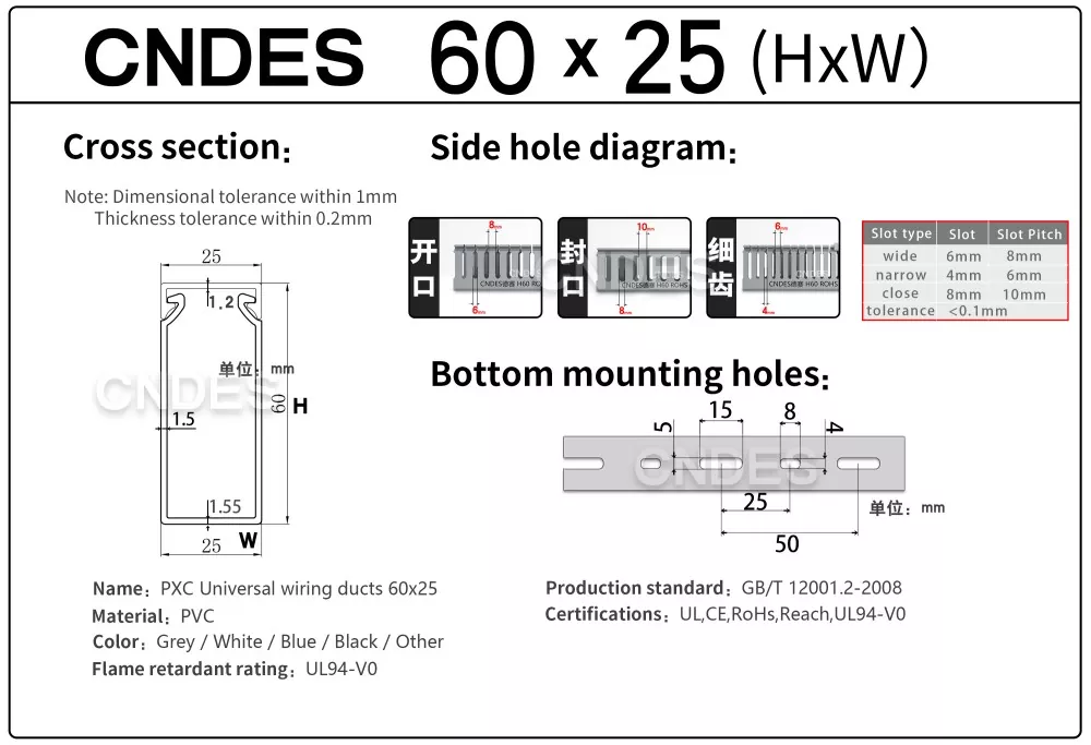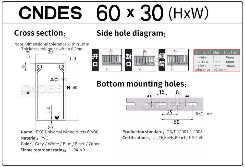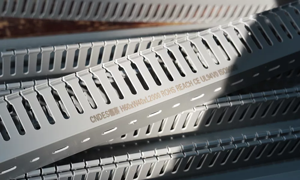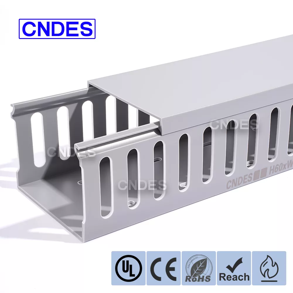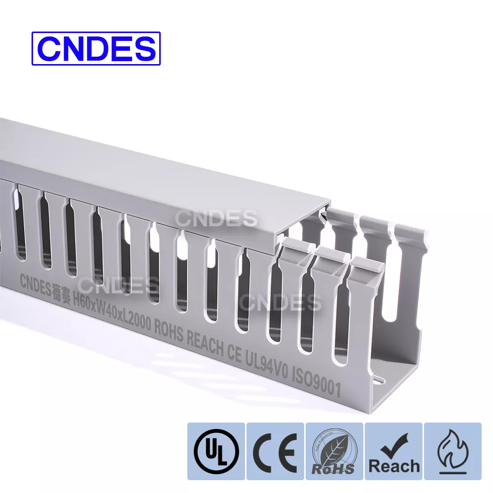 Procurando um fornecedor confiável de duto de fiação de PVC com fenda cinza de qualidade com 60 mm de altura? O CNDES oferece soluções de gerenciamento de cabos de alta qualidade a preços diretos de fábrica.