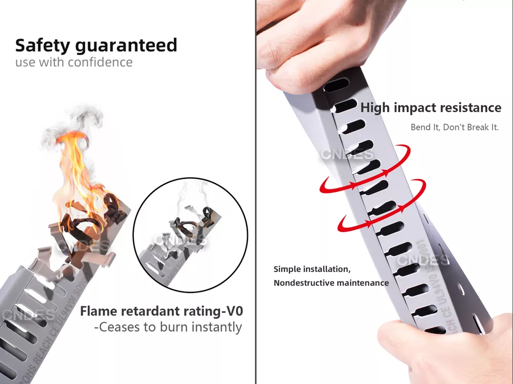2. Resistência de nível industrial, seguro e confiável: O duto de fiação do quadro de distribuição de PVC com fenda 80 × 80 de qualidade é feito de material de PVC retardador de chamas espessado (UL94-V0), tornando-o robusto, durável, resistente a impactos e com excelente capacidade de carga. Fornece proteção duradoura para cabos, mesmo em ambientes vibratórios.