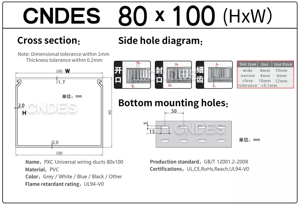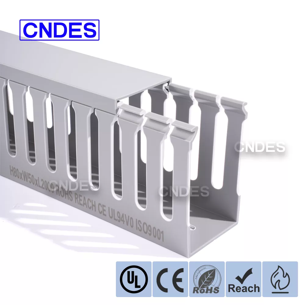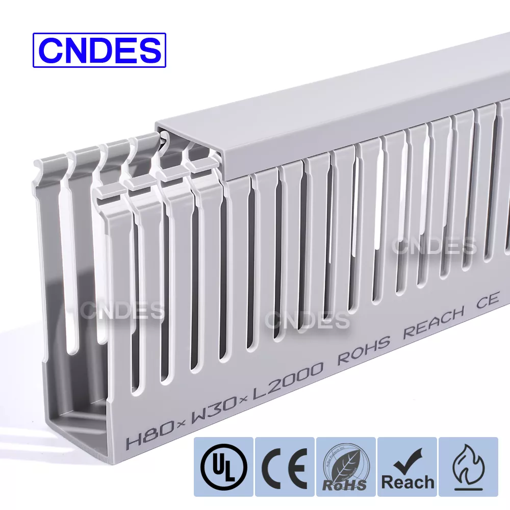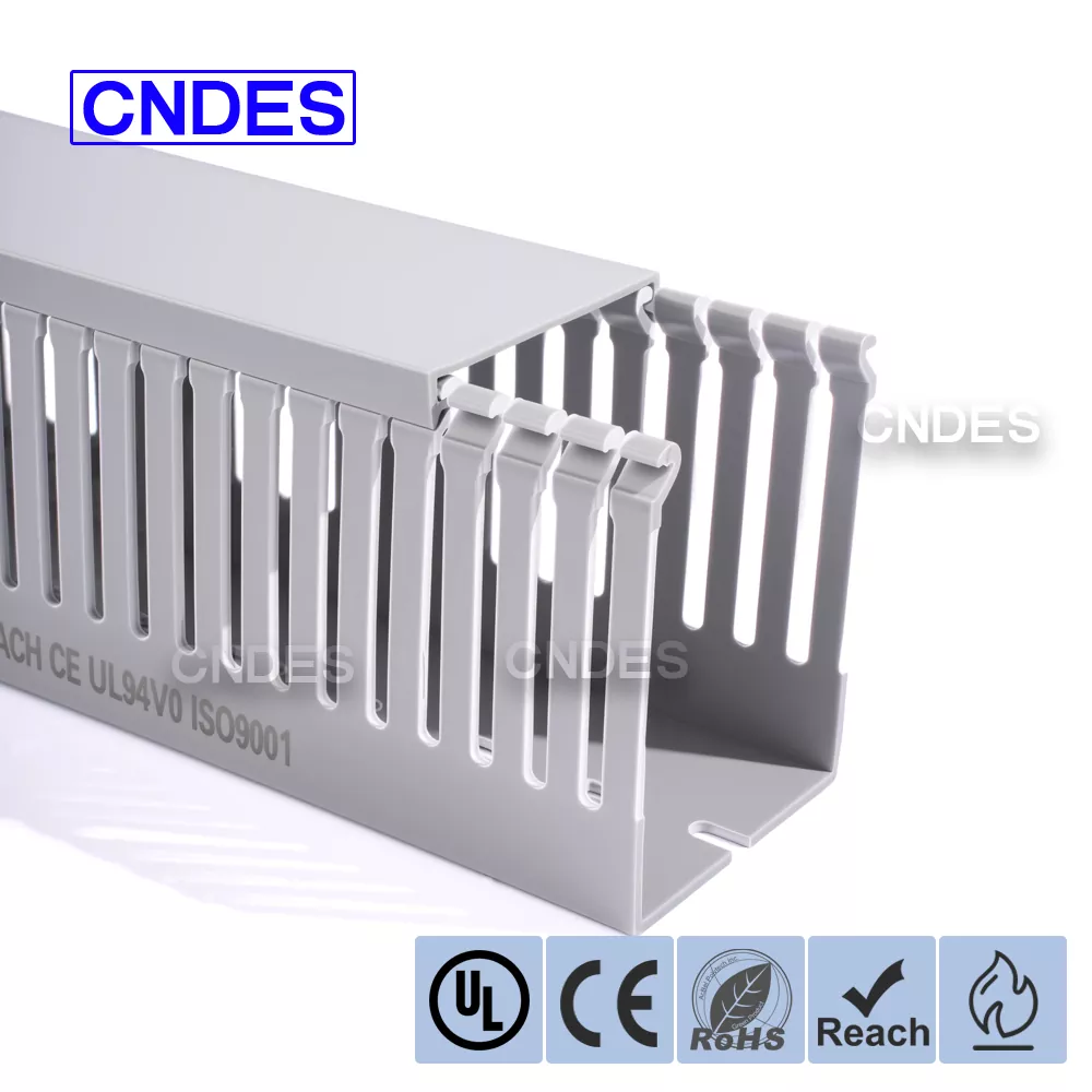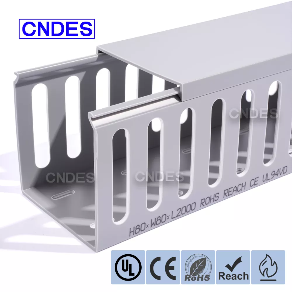 O duto de cabos de automação de PVC com fenda de 80 altura personalizado da CNDES foi projetado para gerenciamento eficiente de cabos em sistemas de automação industrial. Com 80 mm de altura e design com fenda, esse duto oferece amplo espaço para fiação de alta densidade, ao mesmo tempo que mantém os cabos organizados e protegidos em sistemas de controle complexos, CLPs e aplicações de fiação de máquinas.