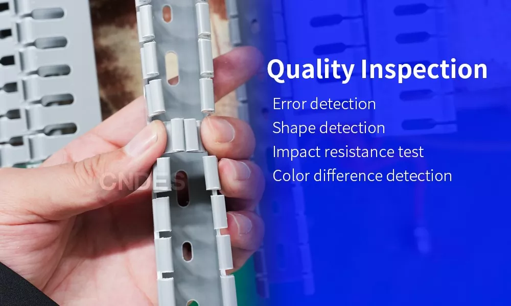 A inspeção de qualidade de alto padrão é essencial para fornecer bons produtos. No CNDES, nossa busca pela qualidade é infinita. Não poupamos esforços para fornecer aos nossos clientes produtos confiáveis. Temos quatro inspetores de qualidade trabalhando em turnos para realizar inspeções on-line de nossos produtos. Isso garante que nossos dutos de cabos de automação de PVC com fenda de 80 altura de qualidade tenham formato quadrado, tenham superfícies lisas, atendam aos padrões de resistência aceitáveis,