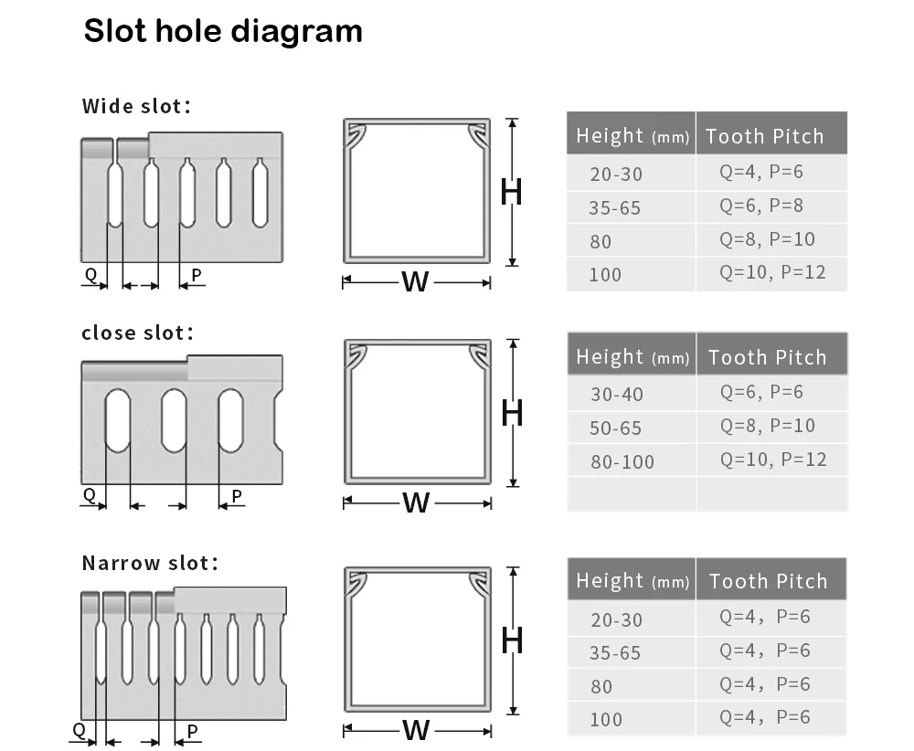 As especificações do caminho de cabos são expressas em altura * largura, sendo a unidade mm. Primeiro, determine o tamanho necessário da bandeja de cabos, como 80 mm de altura e 40 mm de largura. Em seguida, selecione a largura do orifício de saída com base na espessura da fiação, seja dentes largos (8 mm) ou dentes finos (4 mm). Recomenda-se que o cabo real não ocupe mais que 70% do espaço da bandeja.