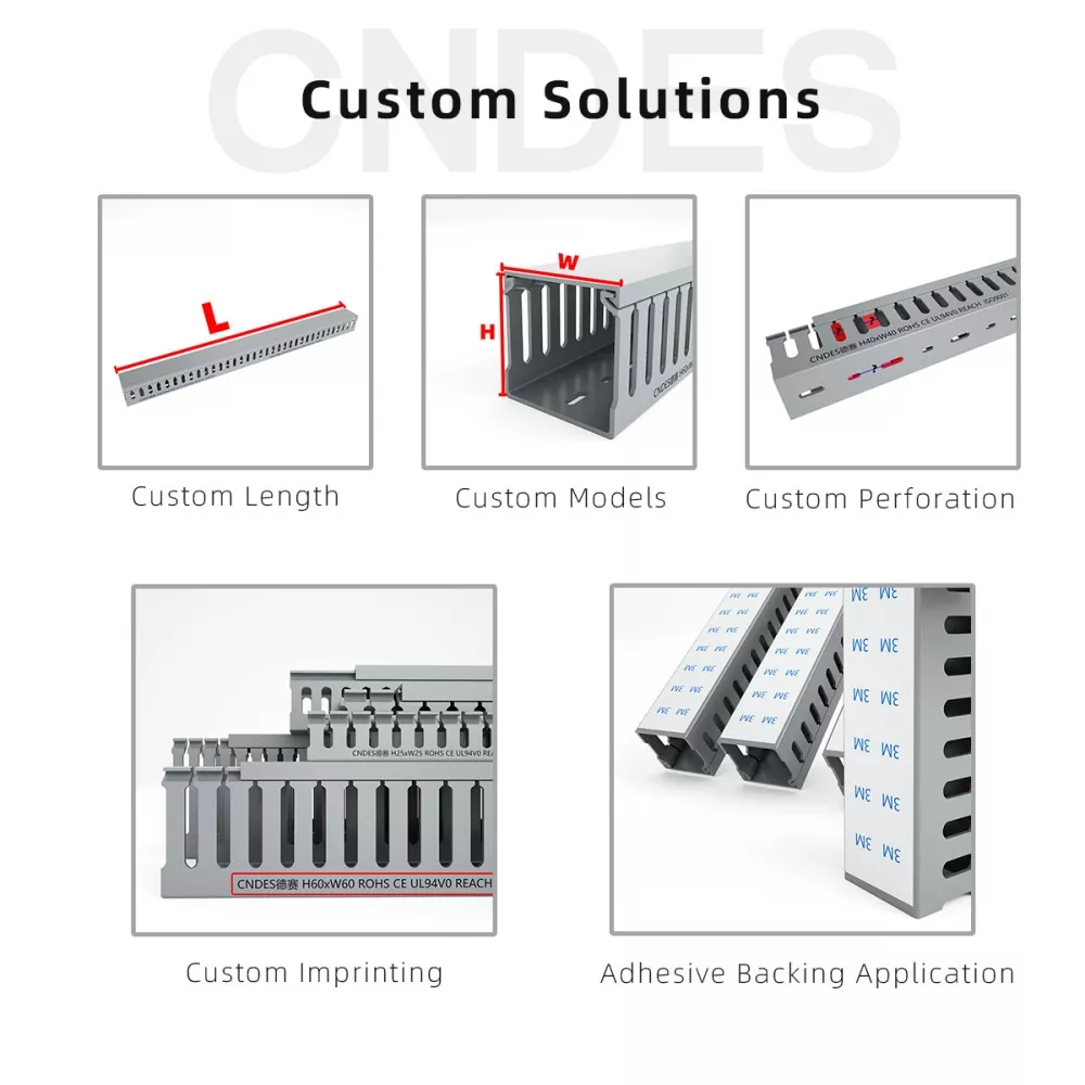CNDES, como uma fábrica profissional de P&D e fabricação de duto de fiação de PVC com fenda preta na China, é especializada em produção em massa, rigoroso controle de qualidade ISO e serviço OEM/ODM. Invólucros pretos são comumente usados em cenários que exigem fiação oculta (como home theaters ou escritórios) ou para distinguir entre diferentes circuitos funcionais (por exemplo, linhas de alta e baixa tensão), aumentando assim a eficiência do gerenciamento.